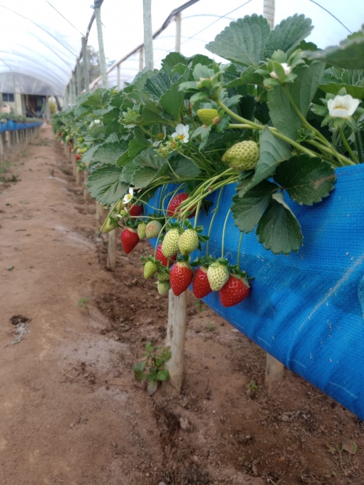 2 estufas com 8 mil pés de morango suspenso (semi hidropônico)